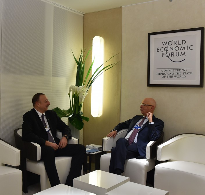 Baku, Azerbaijan, Jan. 22 Trend: President of Azerbaijan Ilham Aliyev met with Executive Chairman of the World Economic Forum Klaus Schwab in Davos. The sides stressed the importance of the World Economic Forum. Azerbaijan's active and continuous participation in this prestigious event was hailed. They also discussed the Silk Road Project, and the current regional and global oil-related processes. Schwab presented a badge of Davos club of honorary members to President Aliyev, marking his tenth participation in the World Economic Forum. Follow us on Twitter @TRENDNewsAgency