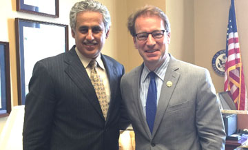 Washington, June 10 (BNA): Industry and Commerce Minister Zayed bin Rashid Al-Zayani today met US Representative Peter Roskam, on the sidelines of his visit to the United States of America. The two sides discussed key issues relating to joint economic ties which yielded the Free Trade Agreement (FTA) bonding the Kingdom of Bahrain and the US. MP Peter Roskam sits on the House Ways and Means Committee, the Health Subcommittee and the Oversight Subcommittee.