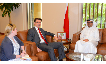 Manama, June 8 (BNA): Information Affairs Minister Isa bin Abdulrahman Al-Hammadi has lauded the solid long-standing Bahraini-British relations, progressing steadily in the political, economic, social and media fields on the basis on mutual respect. He made the statement as he received here today the UK Ambassador to Bahrain Iain Lindsay. The minister discussed with the envoy ways to bolster the Bahraini-UK relations of friendship and cooperation in all fields, especially the media one. They also discussed regional and global issues of mutual concern. Ambassador Lindsay affirmed his country's keenness to consolidate the historical relations with Bahrain in order to enhance the reform march, economic development and modernisation in kingdom, and achieve the interests of the two countries and their friendly peoples.