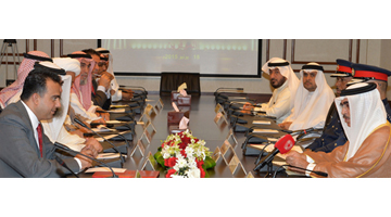 Manama, June 18 (BNA): As part of on-going consultation and coordination with the legislative branch, First Deputy Speaker of the Council of Representatives Ali Al Aradi met Interior Minister Lieutenant-General Shaikh Rashid bin Abdullah Al Khalifa, in the presence of members of the Foreign Affairs, Defence and National Security Committee, MPs and Chief of Public Security Major-General Tariq Al Hassan.
