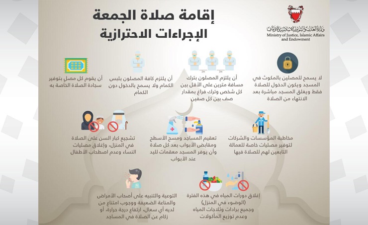 He underlined the royal directives which were issued by His Majesty King Hamad bin Isa Al-Khalifa to resume Friday Prayers, starting June 5, taking into account necessary precautionary measures against the pandemic.