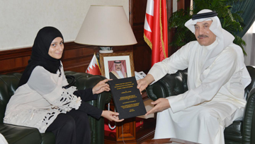 Manama, July 14 (BNA): Labour Minister Jameel bin Mohammed Ali Humaidan received here today researcher at the Labour Market Regulatory Authority (LMRA)’s Policies Development Directorate Eman Saeed Al-Sammak, who presented him with a copy of her Master’s thesis on comparing salary differences between national and expatriate workers according to skills.