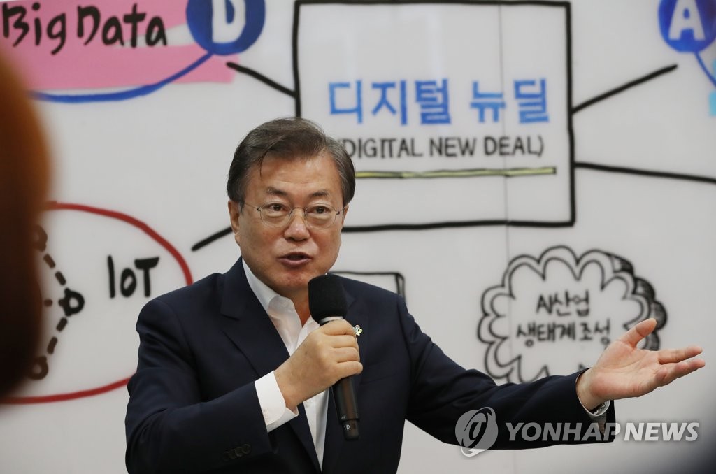 Moon's visit to the firm reflects the government's will to "lead the post-coronavirus era by fostering the 'data and AI economy,' which is the foremost undertaking in the 'Korean-version New Deal,'" Cheong Wa Dae said in a press release.