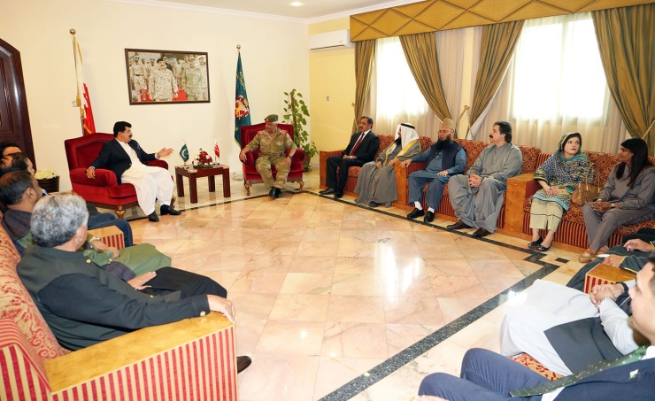 Manama, Feb. 20 (BNA): National Guard Commander, General Shaikh Mohammed bin Isa Al Khalifa, received at the Sakhir Camp, Chairman of the Pakistani Senate, Muhammad Sadiq Sanjrani, and his accompanying delegation.