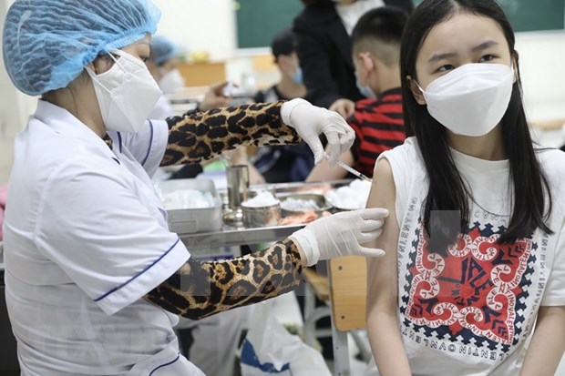 Hanoi, April 18 (VNA) - Nearly 1,000 sixth grade students aged 11 years old to 11 years and 10 months old in Hanoi’s districts of Ha Dong, Phu Xuyen and Soc Son were vaccinated against the COVID-19 on April 16.