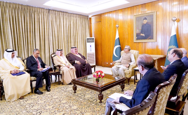Islamabad, Apr. 9 (BNA): Foreign Affairs Minister Shaikh Khalid bin Ahmed bin Mohammed Al Khalifa has conveyed the greetings of His Majesty King Hamad bin Isa Al Khalifa, and those of HRH Prince Khalifa bin Salman Al Khalifa the Prime Minister and HRH Prince Salman bin Hamad Al Khalifa, Crown Prince, Deputy Supreme Commander and First Deputy Prime Minister, to President of Pakistan Dr. Arif-ur-Rehman Alvi.