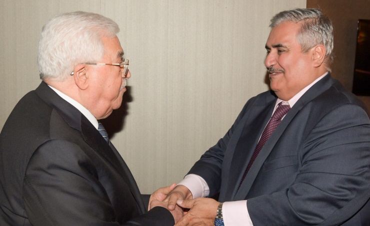 New York, Sept. 24 (BNA): Foreign Affairs Minister Shaikh Khalid bin Ahmed bin Mohammed Al Khalifa conveyed the greetings of His Majesty King Hamad bin Isa Al Khalifa, His Royal Highness Prime Minister Prince Khalifa bin Salman Al Khalifa and His Royal Highness Prince Salman bin Hamad Al Khalifa, Crown Prince, Deputy Supreme Commander and First Deputy Premier, to State of Palestine President Mahmoud Abbas.