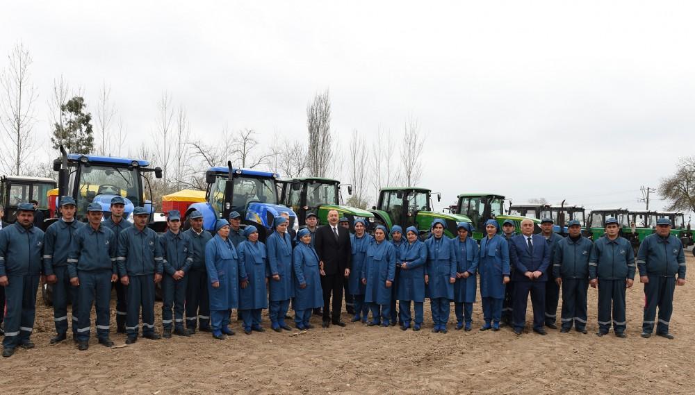 President of the Republic of Azerbaijan Ilham Aliyev has visited local farmer Humay Mammadova's cotton plantation in Giragli village, Saatli district.