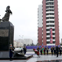 A guard of honor was lined up near the memorial, located at Khatai district.