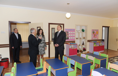 The Head of State also saw the crèche and kindergarten No251 in the Khatai district. The President was informed about the work done here. The total area of the two-storied daycare center is 1100 sq. meters. The center has all necessary facilities.