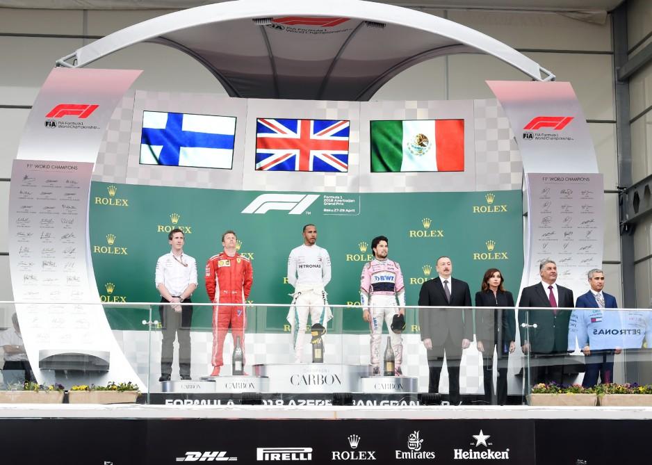 Azerbaijan’s President Ilham Aliyev and First Lady Mehriban Aliyeva have awarded the winners of F1 Azerbaijan Grand Prix in Baku.