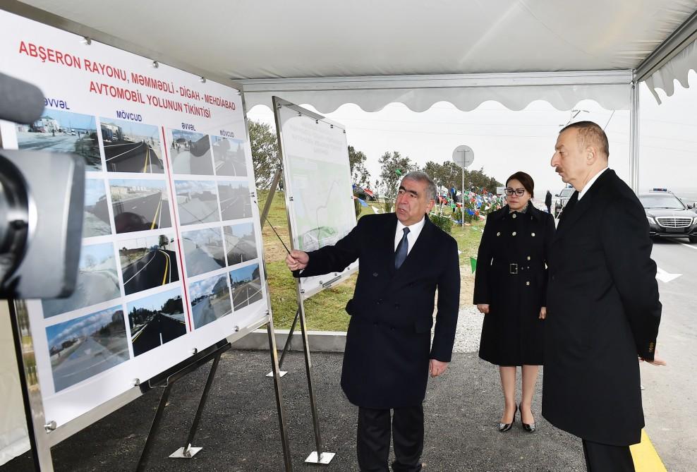 Azerbaijani President Ilham Aliyev attended the opening ceremony of Mehdiabad-Digah-Mammadli highway in Absheron district Dec. 29.