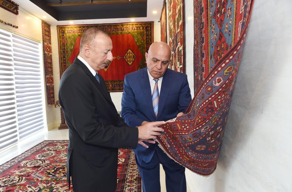 Baku, Azerbaijan, Aug. 20 Trend: President of the Republic of Azerbaijan Ilham Aliyev has attended the inauguration of the Shamkir branch of “Azerkhalcha” Open Joint Stock Company. The head of state cut the ribbon symbolizing the official opening of the branch. The construction of the building of the Shamkir branch started in 2016, and ended in 2017. The building occupies a total area of 1100 square meters. 150 weavers and 12 administrative and other staff will be employed in the branch. The building consists of a textile workshop, an artist room, a warehouse, a canteen, a medical point and a sales room. After touring the branch, President Ilham Aliyev met with carpet-weavers. Then a photo was taken.