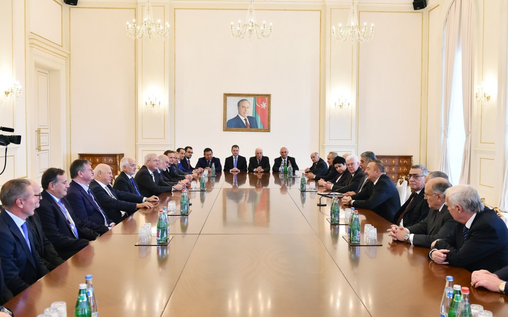 President of the Republic of Azerbaijan Ilham Aliyev has today received a delegation of the heads of European Olympic Committees, international sports organizations and foreign National Olympic committees, who arrived in Azerbaijan to attend an event marking the 25th jubilee of Azerbaijan National Olympic Committee, meeting of the Executive Committee of the European Olympic Committees and a regional forum of the National Olympic Committees of the CIS, Baltic states and Georgia.