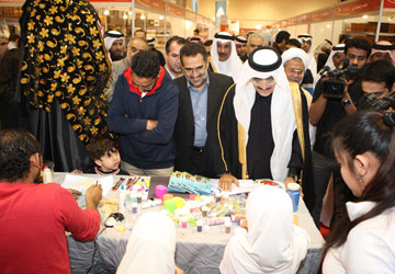 Events at the pavilion attracted tens of visitors especially kids who participated in the workshop activities such as drawing, painting and handcrafts. Kid visitors enjoyed playing with "Fahad and Mariam" characters and received souvenirs from the website.