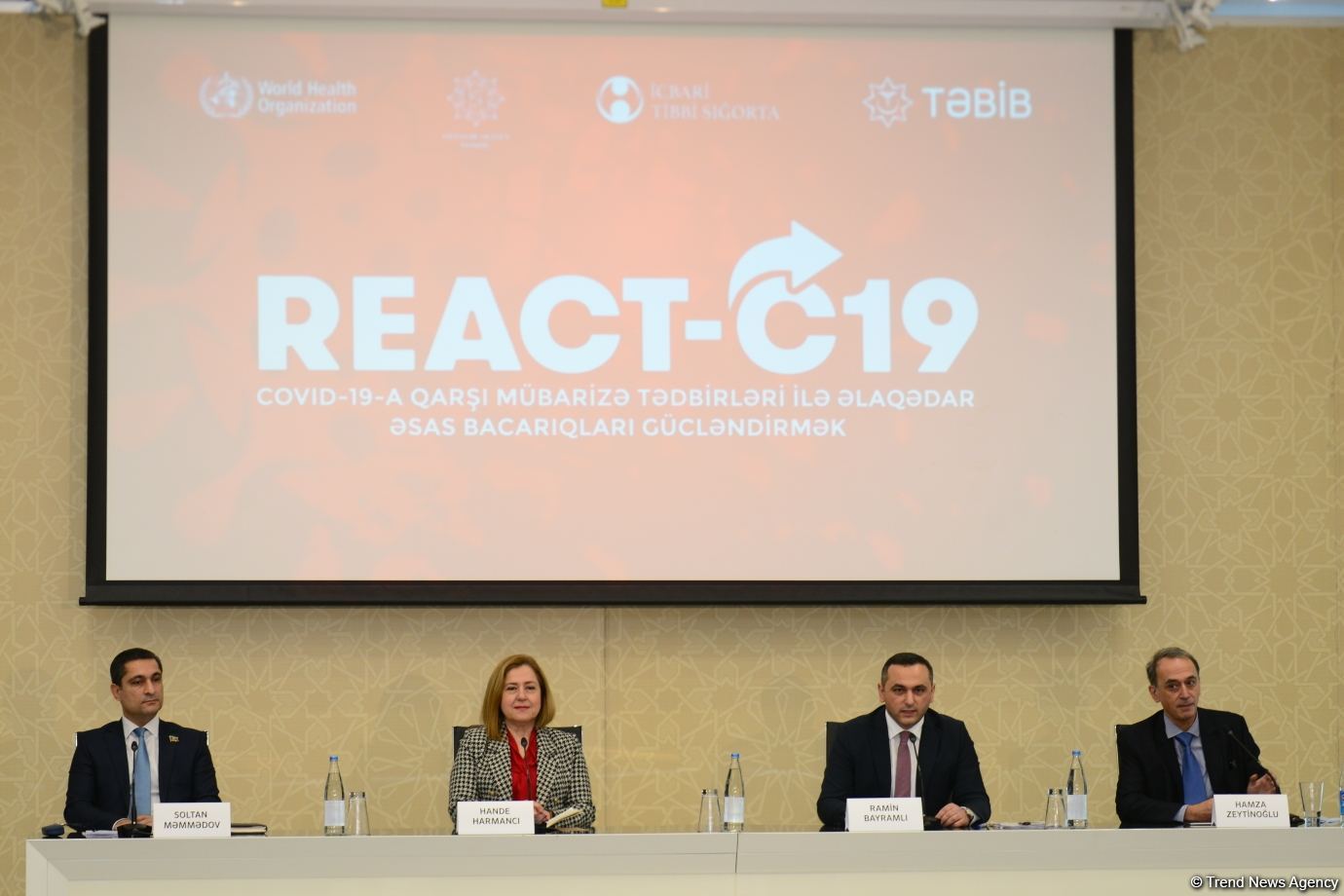 By the initiative of WHO and with the support of Azerbaijan's Heydar Aliyev Foundation, State Agency on Mandatory Health Insurance, Management Union of Medical Territorial Units (TABIB) and the Ministry of Health, REACT-C19 project aiming to strengthen basic skills in combating coronavirus (COVID-19) have been launched in the hospitals in the country's regions, Trend reports on Apr. 16.