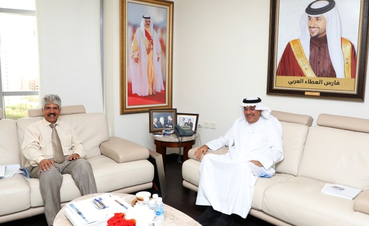 Manama, July 16 (BNA): Secretary General of the Royal Humanitarian Foundation (RHF) Dr. Mustafa Al Sayed received Minister delegated to GCC General Secretariat Khalid Fuad Al Khaja. Al Sayed reviewed the most important achievements of RHF in education, health and social aspects along with foreign relief aid and campaigns implemented by royal directives of His Majesty King Hamad bin Isa Al Khalifa, President of RHF, and His Highness Shaikh Nasser bin Hamad Al Khalifa, His Majesty’s Representative for Charity Works and Youth Affairs and RHF Board of Trustees Chairman. Al Khaja praised the patronage of HM the King and his humanitarian initiatives and the efforts of HH Shaikh Nasser in leading them, stressing that the foundation became the best representative of Bahrain in international humanitarian forums.