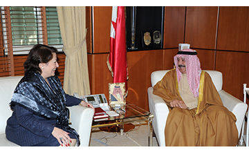 Manama. Jan. 13 (BNA): Royal Court Minister Shaikh Khalid bin Ahmed Al Khalifa received here today the newly-appointed Egyptian Ambassador to Bahrain Suha Ibrahim Al-Far. The minister welcomed the new Egyptian envoy, and wished her every success in assuming her diplomatic duties to enhance the solid fraternal Bahraini-Egyptian relations. He lauded the advanced level of bilateral relations in all fields.