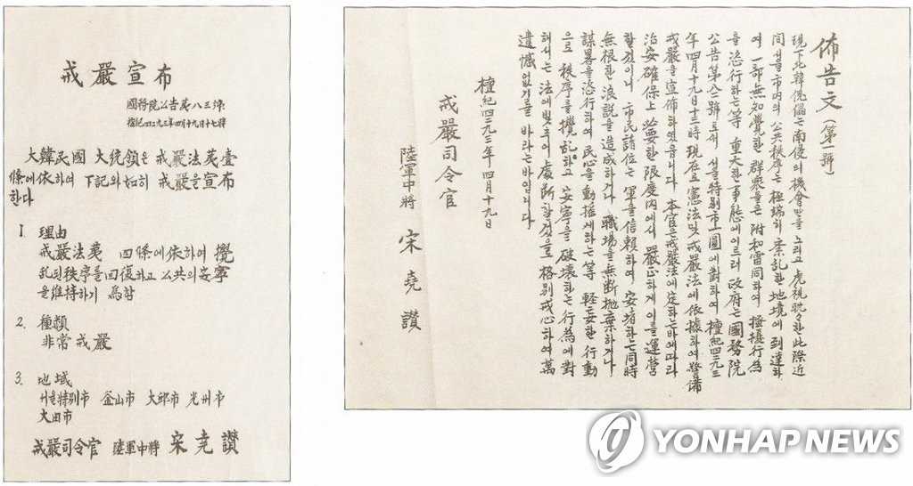 SEOUL, April 20 (Yonhap) -- South Korea will officially apply for the UNESCO listing of historic records documenting the country's symbolic public democratization movement in 1960 as early as the first half of 2021, according to the national heritage agency.