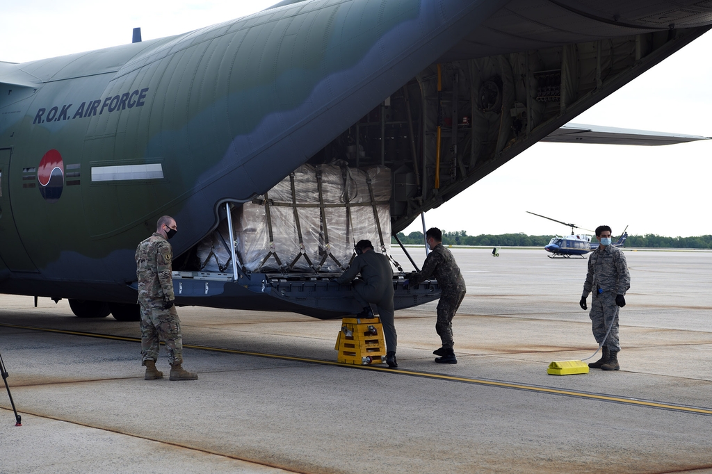 WASHINGTON, May 12 (Yonhap) -- South Korea on Tuesday sent 500,000 face masks to help Korean War veterans in the United States fight COVID-19, the South Korean Embassy here said. The masks arrived aboard a South Korean Air Force aircraft at Joint Base Andrews, Maryland, and officials from both sides were present to receive the cargo. The gift is a sign of "the deep and ongoing respect our two nations have for each other that we cemented nearly 70 years ago in a time of war and great crisis," U.S. Veterans Affairs Secretary Robert Wilkie said in a statement released by his department. "So many years later, we are joined in another just and noble cause of containing a pandemic that threatens our citizens' lives and livelihoods and poses a grave threat to the Veterans we have both pledged to protect," he said. South Korean Veterans Affairs Minister Park Sam-deuk said in a statement that the masks symbolize the South Korean people's gratitude to the American veterans for their sacrifice. U.S. Secretary of State Mike Pompeo tweeted his thanks. "As an Army veteran, nothing delights me more than seeing fellow vets helping each other out," he wrote. "The United States sends its gratitude to this group in South Korea for your kind donation and generosity. #WeAreInThisTogether" The donation is part of the 1 million masks South Korea's veterans affairs ministry is providing to all 22 countries that fought with South Korea in the 1950-53 Korean War. The project marks the 70th anniversary of the conflict, which ended in an armistice, not a peace treaty. hague@yna.co.kr (END)