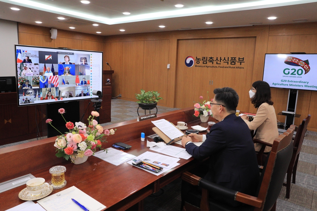 Agricultural Minister Kim Hyeon-soo participated in a videoconference of the G-20 agricultural ministers a day earlier to discuss the global response against the COVID-19 pandemic in the food segment, according to the Ministry of Agriculture, Food and Rural Affairs.