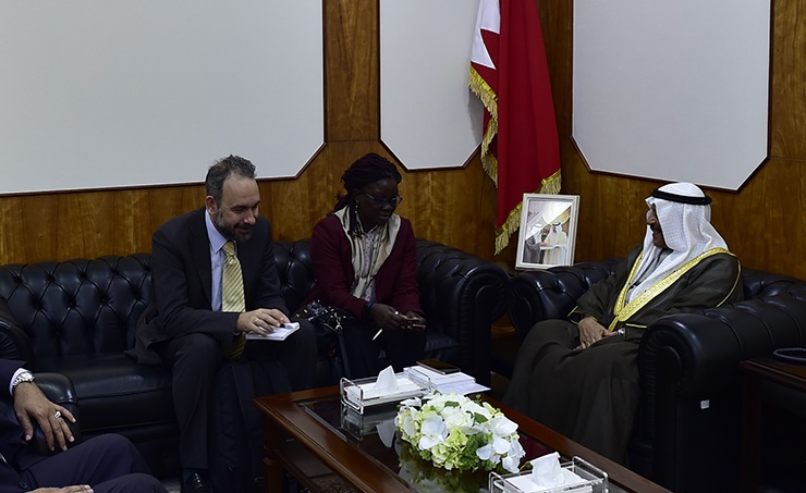 Manama, Mar. 6 (BNA): Shura Council Chairman, Ali bin Saleh Al-Saleh, received here today a delegation from the United Nations Industrial Development Organisation (UNIDO). Members of the delegation are on a visit to the kingdom to assess the role and work of the UNIDO Investment and Technology Promotion Office in Bahrain, as well as the achievements of the Bahrain Model for Entrepreneurship and SMEs Development in the country and abroad. The Shura Chairman commended the efforts exerted by UNIDO, and its cooperation with various countries in order to push the industrial development forward and create an investment atmosphere that is based on modern technology. He affirmed the Shura Council’s keenness to develop the legislative system related to the development of the national economy and the diversification of income sources. Al-Saleh stressed the Shura Council’s continuous efforts to discuss and develop laws that attract and protect investors, as well as enhance the kingdom’s status as a financial and economic hub.