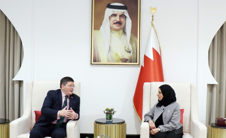 Receiving British Ambassador to Bahrain Roddy Drummond, she stressed the necessity of consolidating joint cooperation in all fields and enhancing long-standing historic relations binding the two countries.