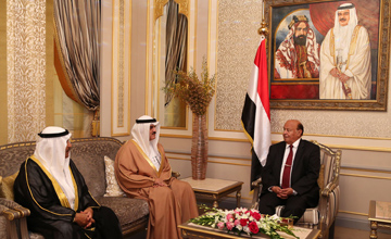 Manama, March 16 (BNA): Yemeni President Abd Rabbuh Mansur Hadi received today Representatives Council Speaker Ahmed bin Ibrahim Al Mulla and Shura Council Chairman Ali bin Saleh Al Saleh. He lauded strong fraternal relations between both countries and the remarkable contribution of the Arab coalition to achieving the aspirations of the Yemeni people by supporting legitimacy in the country. The Representatives Council Speaker and the Shura Council Chairman hailed the visit of the Yemeni President, stressing strong ties binding both countries and reiterating the parliament's full support to legitimacy in Yemen and the restoration of stability there.