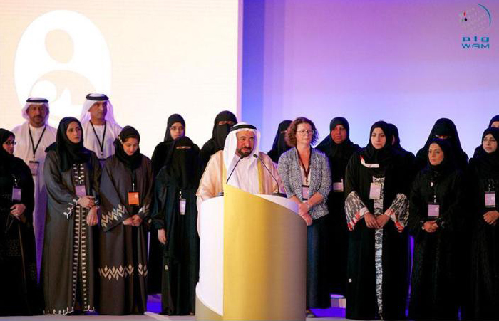 In her opening speech, Sheikha Bodour bint Sultan Al Qasimi expressed her pleasure and pride as an Emirati from the emirate of Sharjah that gives priority to investment in human capital. She said, "I would like to start by expressing my pride and pleasure as I stand before you today, as an Emirati woman... And as a mother of three children, who, much like all mothers in the world, values the welfare and success of her children, also as an ambitious Arab woman, eager to contribute to the development and progress of my community. My happiness today stems from belonging to a country that values human development, and works for it. Together we succeed in reaching these goals and ambitions."