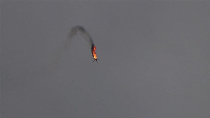 Opposition sources told Anadolu Agency that the helicopter was hit directly while flying over Al-Naiyrab village west of the town of Saraqib.