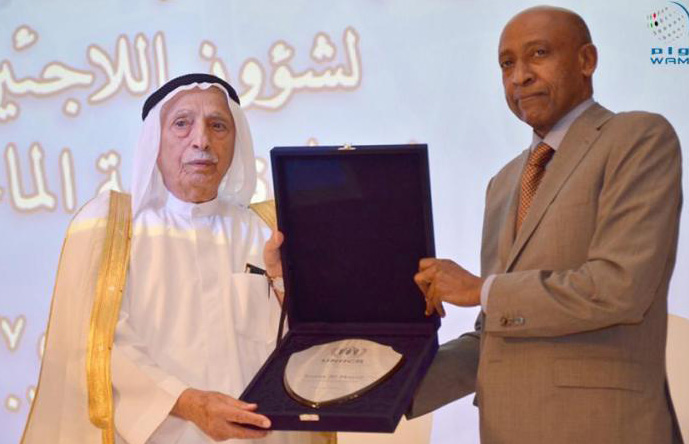 On behalf of the UN High Commissioner for Refugees, Filippo Grandi, Director of UNHCR’s Bureau for the Middle East and North Africa (MENA) and Refugee Coordinator for the Syria and Iraq situations, Amin Awad, presented Juma Al Majid with the award in a ceremony organised by the Juma Al Majid Group in the presence of Dr. Abdullah Al-Matouq, Advisor to the Amir of Kuwait, Chairman of the International Islamic Charitable Organisations (IICO) and UN Secretary General’s Humanitarian Envoy.