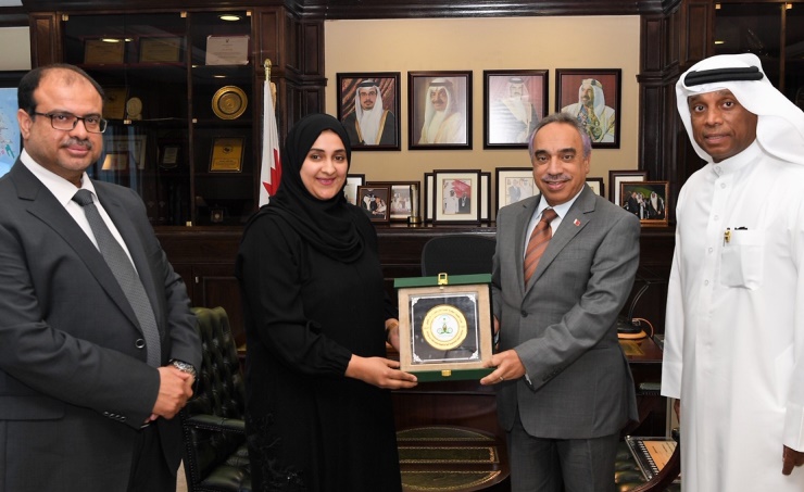 Manama, Mar. 13(BNA): Works, Municipalities Affairs and Urban Planning Minister Essam bin Abdulla Khalaf received Dr. Suha Ahmed Al-Sayyed Gharib, who won the GCC Best Vet Award, held by the Saudi Veterinary and Medical Association at the King Faisal University. The laureate is vet lab specialist at the Animal Resources Agency , which is affiliated with the Ministry of Works, Municipalities Affairs and Urban Planning. Undersecretary for Animal Resources Dr. Khalid Ahmed and Animal Resources director Dr. Ibrahim Youssef attended. The minister stressed the importance of human resources which, he said represent a cornerstone of the National Strategy for Food Security, hailing Bahraini competences in all fields, including the Ministry of Works, Municipalities Affairs and Urban Planning. The minister expressed support to national competences which are sparing no efforts to implement the Government’s policies and develop all sectors as part of the food security strategy. Undersecretary for Animal Resources Dr. Khalid Ahmed also congratulated Dr. Gharib on this honourable achievement, stressing the ministry’s resolve to continue supporting competences. Dr. Gharib thanked the minister, undersecretary and all the staff at the Animal Resources Directorate for their support. Dr. Gharib is holder of a Bachelor’s degree in veterinary medical science, and a higher diploma in health food control. She works on preparing a master’s degree in veterinary medicine specialising in food and meat.