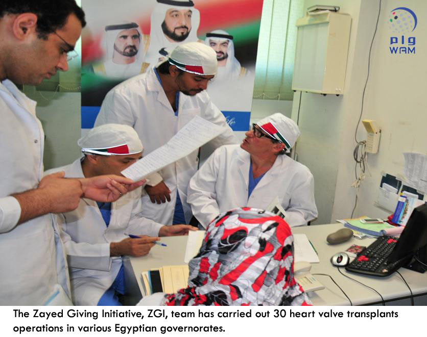 CAIRO, 13th October, 2016 (WAM) -- The Zayed Giving Initiative, ZGI, has announced that an Emirati-Egyptian medical volunteer team has carried out 30 heart valve transplants operations, in various Egyptian governorates.