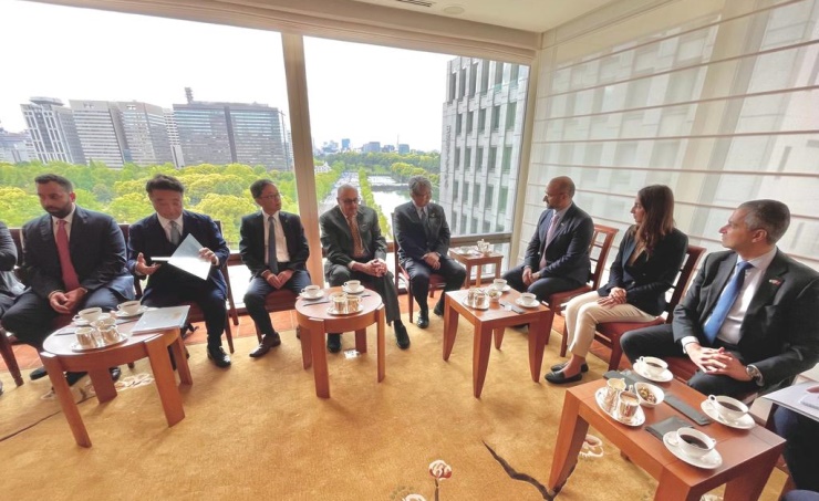 Tokyo, May 8 (BNA): Abdullah bin Adel Fakhro, Minister of Industry and Commerce met with officials of Topy Industries Ltd.