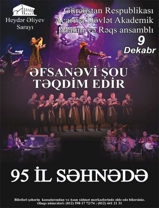 Baku, November 28, AZERTAC Adjarian Song and Dance State Company of Georgia will perform at the Heydar Aliyev Palace on December 9. Tickets are available at box offices in Baku and “ASAN xidmət” centers.