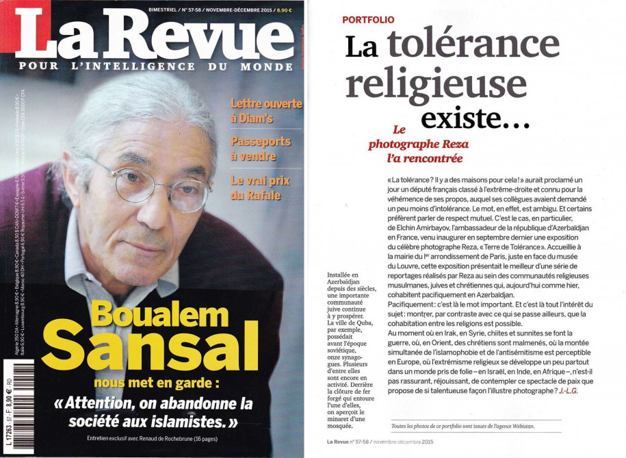 French “La Revue” magazine has posted an article on the photo exhibition titled “Azerbaijan – land of tolerance” of famous photographer Reza Deghati organized by the Heydar Aliyev Foundation.