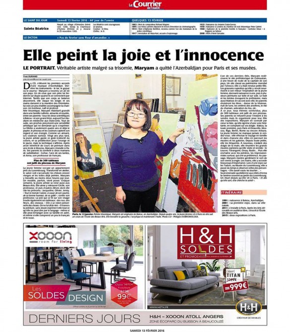 French Le Courrier de l’ouest newspaper: Maryam Alakbarli`s works reflect happiness and innocence