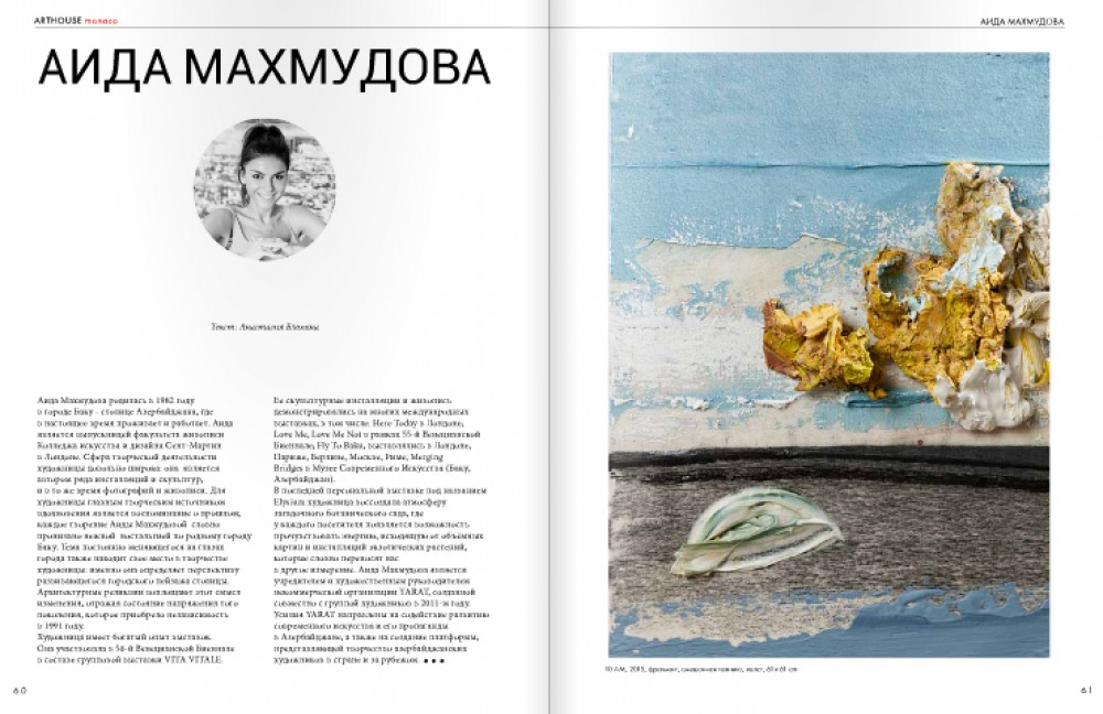 Monaco-based famous ARTHOUSE magazine has published an article about talented young Azerbaijani artist Aida Mahmudova.