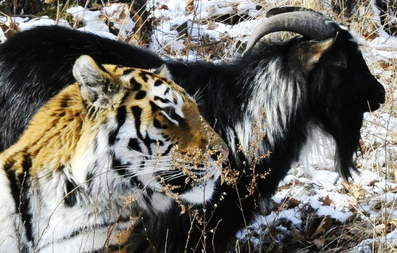 "The goat considers Amur his leader and follows him everywhere. Amur doesn't regard the goat as his prey," the director said, adding that the two chums eat and walk together.