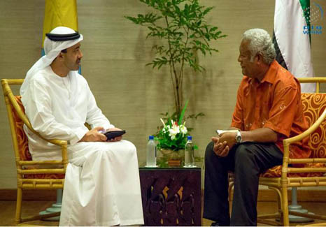 MELEKEOK, 16th May, 2016 (WAM) -- H.H. Sheikh Abdullah bin Zayed Al Nahyan, Minister of Foreign Affairs and International Cooperation, has met with Billy Kuartei, Foreign Minister of Palau, in the capital, Melekeok, During the meeting, they reviewed relations between the UAE and Palau and ways of boosting them to contribute to opening new horizons of joint action, in addition to examining the possibility of providing opportunities for partnerships between the two countries in many different sectors.