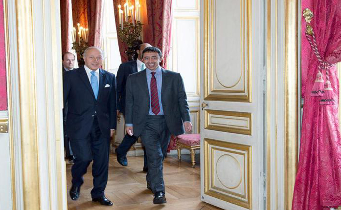 PARIS: H.H. Sheikh Abdullah bin Zayed Al Nahyan, U.A.E. Foreign Minister, on Monday in Paris met with Laurent Fabius, Foreign Minister of France.