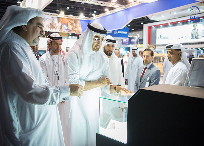 H.H. Sheikh Mohamed was accompanied during the tour by Mohammed Mubarak Al Mazrouei, Under-Secretary at the Court of Abu Dhabi Crown Prince; Lt. General Hamad Mohammed Thani Al Rumaithi, Chief of Staff of the Armed Forces; Major General Lt. General Juma Ahmed Al Bowardi Al Falasi, Adviser to Deputy Supreme Commander of the Armed Force; Staff Major General Pilot Faris Khalaf Khalfan Al Mazrouei, Chairman of Critical Infrastructure and Coastal Protection Authority and chairman of the Higher Organising Committee of IDEX 2017.