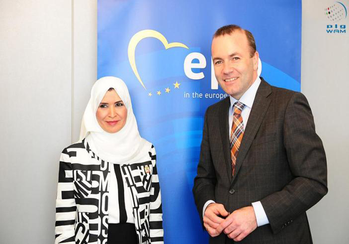 BRUSSELS, 1st May, 2016 (WAM) -- Dr. Amal Abdullah Al Qubaisi, Speaker of Federal National Council (FNC) has met with Manfred Weber, Chairman of the Group of the European People's Party (EPP Group) in the European Parliament, at the EU headquarters in Brussels. Abdulaziz Abdullah Al Zaabi, Second Deputy Speaker of FNC, and FNC members attended the meeting. Weber welcomed Al Qubaisi and her accompanying delegation, stressing the importance of bilateral meetings and exchange of views in the light of the current challenges faced by world and the Middle East region, and the importance of parliamentary diplomacy to play its role in bridging the communication gaps among peoples. Chairman of the EPP Group extended greetings to Amal Al Qubaisi for her election as the FNC Speaker, the first female Speaker of the Parliament in the Arab and the Middle East. Al Qubaisi reviewed the UAE's effective and responsible role towards the regional and international issues based on dialogue, positive participation and resolving disputes through peaceful means as well as to create an appropriate environment for international relations based on the principles of good neighbourliness, moderation, tolerance and rejection of violence and extremism. She also highlighted the efforts made by the UAE to build bridges between faiths, stressing the importance of joint action in this context to enhance peace, tolerance and coexistence values. She added that the country is adopting a strategic vision to reduce the dependence on oil exports and build a knowledge-based economy. Dr. Amal Al Qubaisi discussed with Weber the developments in the Gulf and Arab world, referring to the UAE's participation in the Saudi-led Arab Coalition in Yemen, which is aimed at fighting terrorism, restoring peace and protecting the region from the Iranian interventions. She called on the European official to support UAE's just cause for regaining legitimacy on its three islands of Greater Tunb, Lesser Tunb and Abu Musa, which are occupied by Iran, and to back its call to resolve the issue whether through direct negotiations or by referring to the International Court of Justice. At the end of the meeting, Dr. Amal Al Qubaisi extended an invitation to Pittella to visit the UAE. – Emirates News Agency, WAM –