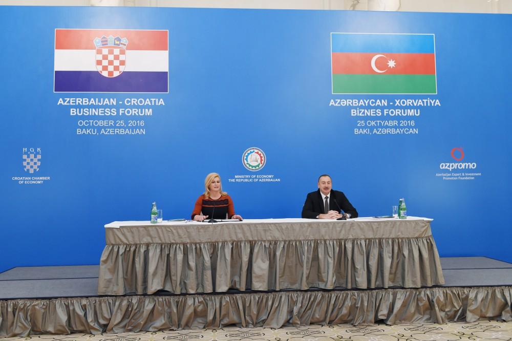 Azerbaijan’s President Ilham Aliyev and his Croatian counterpart Kolinda Grabar-Kitarovic attended the forum.