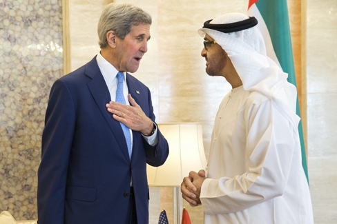 ABU DHABI, 24th November 2015 (WAM) – His Highness Sheikh Mohamed bin Zayed Al Nahyan, Crown Prince of Abu Dhabi and Deputy Supreme Commander of the UAE Armed Forces, on Monday received US Secretary of State John Kerry and members of the delegation accompanying him on a current visit to the UAE. H.H. Sheikh Mohamed bin Zayed welcomed Kerry's visit and discussed with him the excellent friendship and co-operation relations between the UAE and the United States. During the meeting, the two parties reviewed spheres of co-operation and strategic partnerships between the two countries and ways of bolstering and promoting them to serve the interests of the two countries and their peoples. During the meeting which was attended by H.H. Sheikh Tahnoun bin Zayed Al Nahyan, Deputy National Security Advisor, and H.H. Sheikh Abdullah bin Zayed Al Nahyan, Foreign Minister, the two parties also discussed the most important regional issues and exchanged their views about them. The crown prince of Abu Dhabi was briefed by the US Secretary of State on the outcome of the recent Vienna talks about the crisis in Syria as well as Washington's contacts with its allies about ideas and solutions to this political, security and humanitarian crisis. The discussions also took in the efforts being made by the global coalition to counter extremism and terrorism. In this regard, the two sides stressed the importance of co-ordination, co-operation and consultation about intensifying efforts to fight terrorist organisations through effective mechanisms that can achieve their goals. The two sides also stressed the importance of continued support for regional efforts, in particular in in Syria, Yemen, Libya and the peace process in the Middle East as well as the international efforts to establish the pillars of security and stability in the region and the world. The meeting was also attended by Dr. Anwar bin Mohammed Gargash, Minister of State for Foreign Affairs, Ali Mohammad Hammad Al Shamsi, Deputy Secretary-General of the Supreme National Security Council, Khaldoon Khalifa Al Mubarak, Chairman of Abu Dhabi Executive Affairs Authority (EAA), Yousef Al Otaiba, UAE Ambassador to the United States, Mohammed Mubarak Al Mazrouei, Undersecretary of the Court of the Crown Prince of Abu Dhabi, Barbara A. Leaf, Ambassador of the United States to the UAE, and a number of officials. . – Emirates News Agency, WAM -http://www.wam.ae/en/news/emirates/1395288377563.html