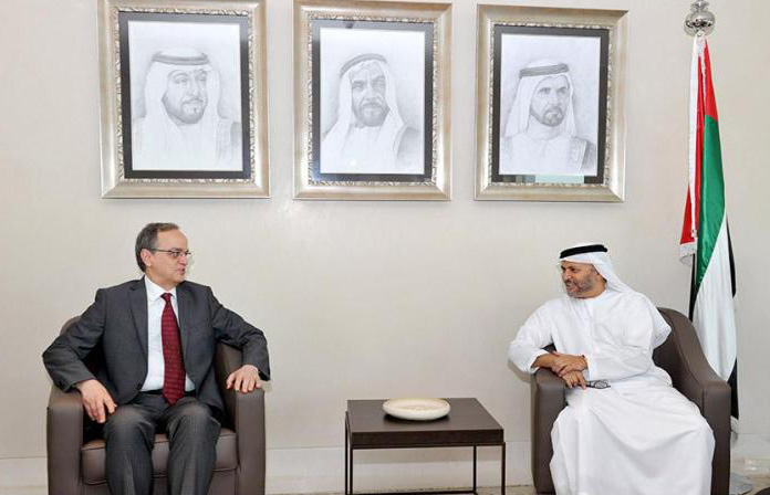 Gargash meets President of National Coalition for Syrian Revolution and Opposition Forces