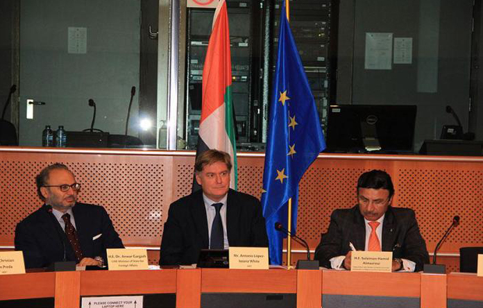 BRUSSELS: Dr. Anwar bin Mohammed Gargash, the UAE's Minister of State for Foreign Affairs and UAE Ambassador to Belgium and Head of the UAE Mission to the European Union (EU), Sulaiman Hamed Salim Al Mazrouie, have participated in the roundtable discussions held at the European Parliament headquarters, on Counter-Terrorism and Challenges.