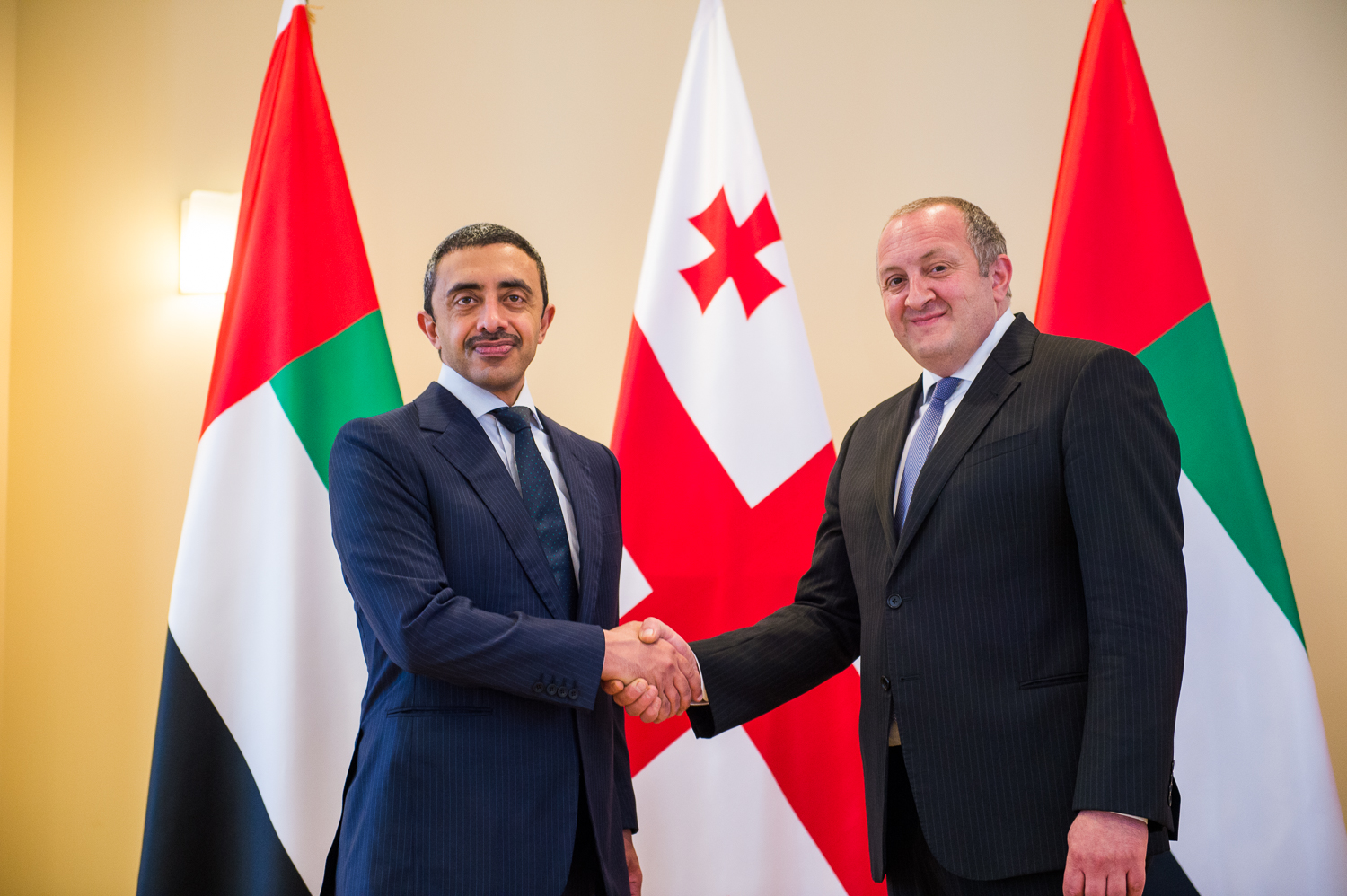 TBILISI, 19th July, 2017 (WAM) -- Giorgi Margvelashvili, President of Georgia, received on Tuesday H.H. Sheikh Abdullah bin Zayed Al Nahyan, Minister of Foreign Affairs and International Cooperation, who is on an official visit to Georgia. During the meeting, Sheikh Abdullah conveyed the greetings of President His Highness Sheikh Khalifa bin Zayed Al Nahyan to the Georgian President, wishing the people of Georgia further progress and prosperity. President Margvelashvili in return asked the UAE Minister to convey his greetings to President Sheikh Khalifa, wishing him good health, and the people of the UAE further prosperity. During the meeting, the two sides discussed bilateral relations between the two countries and ways of bolstering and developing them in various fields. They also exchanged views on a number of regional and international issues of common concern, and developments in the Middle East region. The Georgian President welcomed Sheikh Abdullah's visit, praising the distinguished relations that the UAE and Georgia share. President Margvelashvili also expressed his hope to see mutual cooperation reach new levels in various fields. Sheikh Abdullah also stressed the importance of strengthening joint cooperation and for working together on areas that benefit the peoples of both countries. The meeting was attended by Dr. Jassim Mohammed Mubarak Al Qasimi, UAE non-resident Ambassador to the Republic of Georgia.
