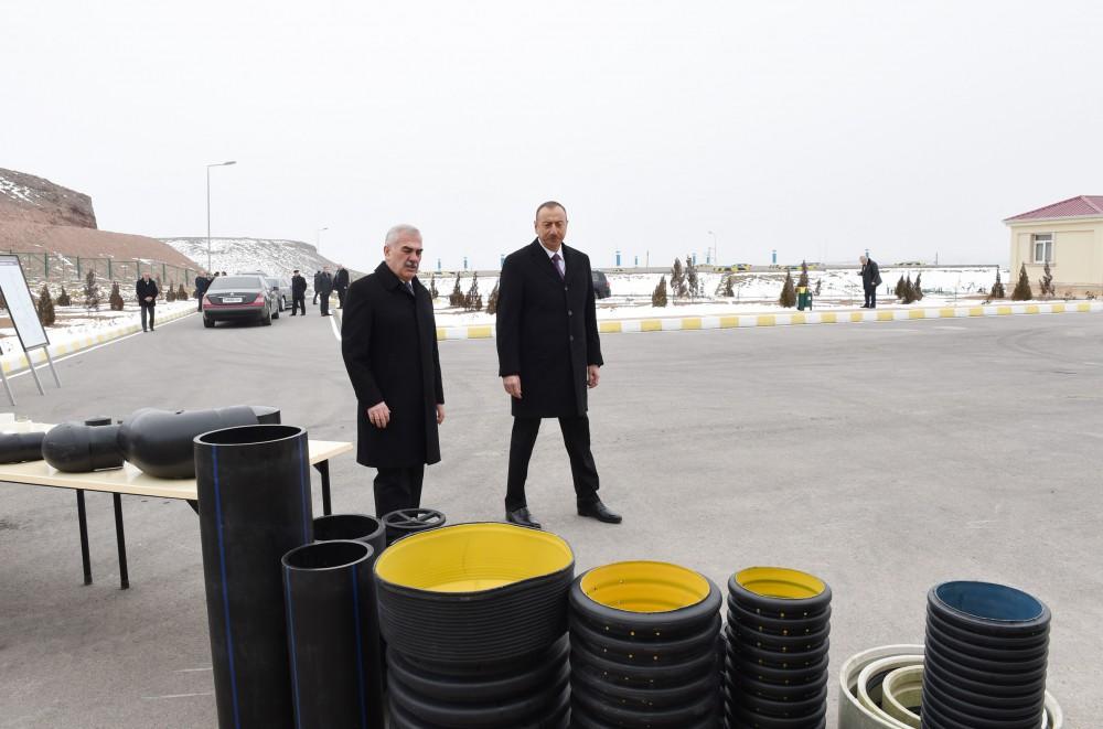 President Ilham Aliyev also viewed a water purification installation, and pressed the button to launch the drinking water supply in Julfa district center and surrounding villages.