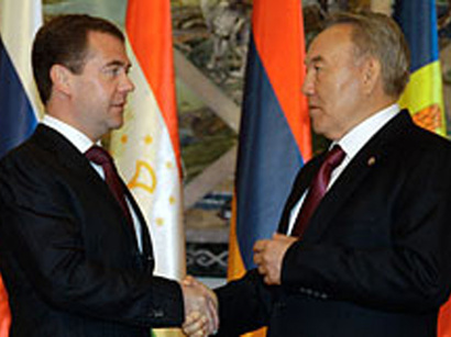 Azerbaijan, Baku, May 29 / Trend E. Kosolapova/ Kazakh President Nursultan Nazarbayev and Russian Prime Minister Dmitry Medvedev discussed a wide range of issues of bilateral relations, as well as topical issues of regional cooperation within the meeting on Tuesday, the presidential press service reported. Russian Prime Minister Dmitry Medvedev is on official visit to Kazakhstan. According to Nazarbayev, Kazakhstan highly appreciates that Medvedev paid the first visit to this country on the post of the Prime Minister. "Russia and Kazakhstan demonstrate to the CIS and the whole world how the relationships between neighbors should be established. For 20 years we have established good-neighborly and allied relations on absolutely equal footing," Nazarbayev said. According to Nazarbayev, Russia and Kazakhstan resolved a number of important historical issues in the period of Medvedev's presidency. "We adopted a common customs tariff, set up the Customs Union, Single Economic Space, took some necessary decisions and adopted a number of documents. We decided concrete issues at the regional meetings," Nazarbayev said. Medvedev in his turn urged not to interfere in a good tradition existing between Kazakhstan and Russia. "Besides good relations, Kazakhstan and Russia have special strategic partnership. I think we have advanced significantly in our bilateral cooperation and created a very powerful integration union. The project which we actively discussed in the 1990s was at last realized," Russian Prime Minister said. Within the meeting Medvedev promised to develop and strengthen the bilateral relations between the two countries. Trade and economic cooperation is one of the most important aspects of bilateral cooperation between Russia and Kazakhstan. Russia is the largest trade partner of Kazakhstan. The trade turnover between two countries hit $23.9 billion in 2011. Kazakh export to Russia hit $7.7 billion and Kazakh export from Russia hit $16.2 billion in this period. The trade turnover between two countries increased by 1.3 percent to $5 billion in the first quarter of 2012 compared to the same period of 2011. Do you have any feedback? Contact our journalist at agency@trend.az